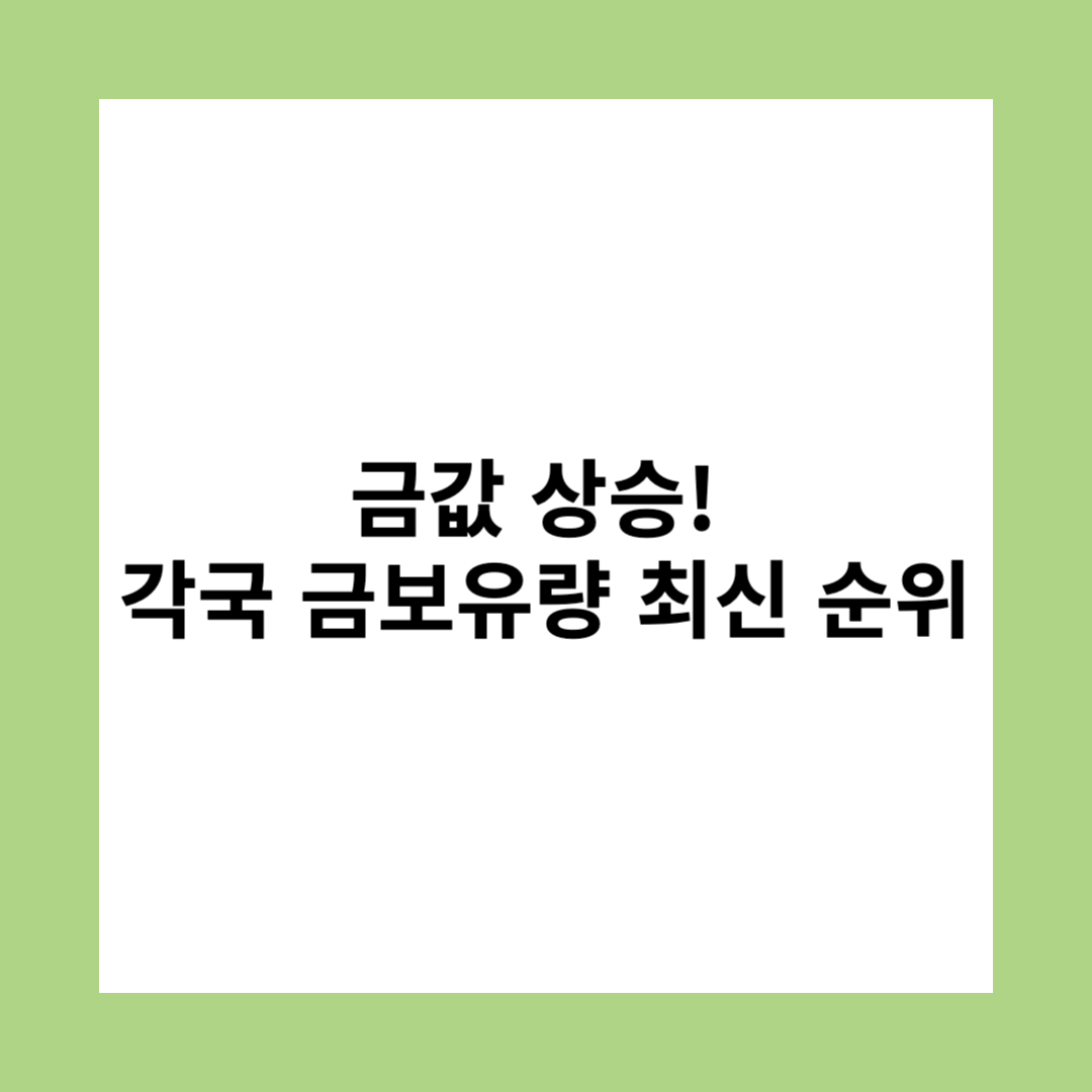 금값 상승은 이러한 움직임을 더욱 가속화하고 있으며, 중앙은행의 금 보유 전략이 경제 안정성을 결정짓는 중요한 요소로 작용하고 있습니다. 앞으로도 글로벌 경제 흐름에 따라 금보유량 순위가 변화할 가능성이 크며, 투자자들은 이러한 변화를 주의 깊게 살펴볼 필요가 있습니다.
