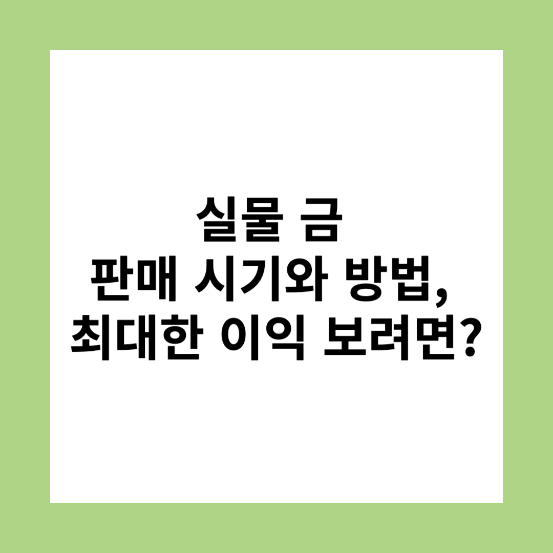 실물 금 판매는 단순한 현금화 과정이 아니라, 신중한 전략이 필요한 과정입니다. 금값 변동을 예측하고, 최적의 판매 시기를 결정하며, 신뢰할 수 있는 거래처를 선택하는 것이 중요합니다. 또한 세금 문제와 보안 이슈를 고려해 안전한 거래를 진행해야 합니다. 실물 금 투자는 오랜 기간 안정적인 가치를 보장하는 자산이므로, 판매 전략도 신중하게 수립해야 합니다.