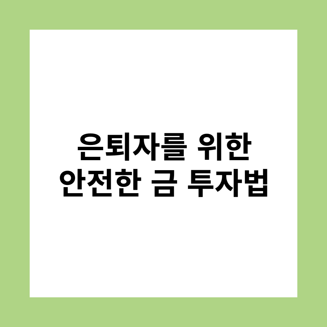 2. 은퇴자를 위한 안전한 금 투자 방법